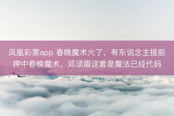 凤凰彩票app 春晚魔术火了,有东说念主提前押中春晚魔术,邓须眉这套是魔法已经代码
