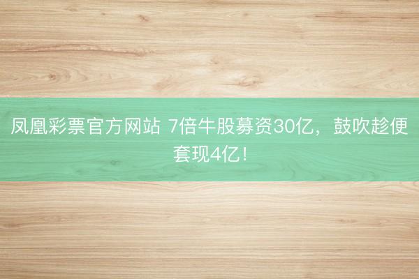 凤凰彩票官方网站 7倍牛股募资30亿,鼓吹趁便套现4亿!