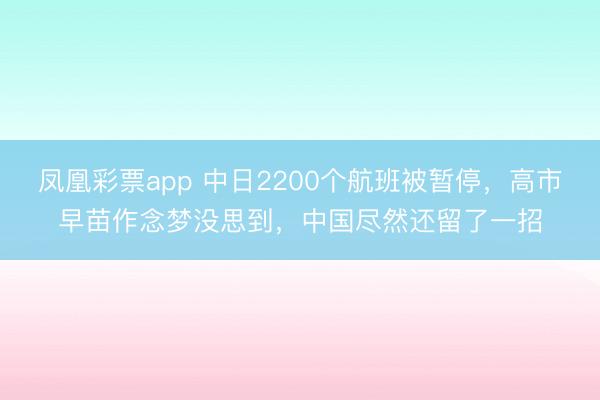 凤凰彩票app 中日2200个航班被暂停,高市早苗作念梦没思到,中国尽然还留了一招