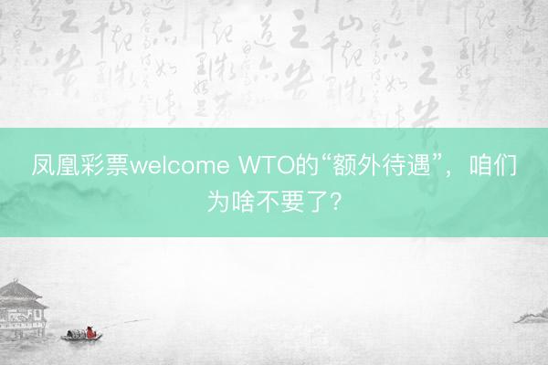 凤凰彩票welcome WTO的“额外待遇”,咱们为啥不要了?