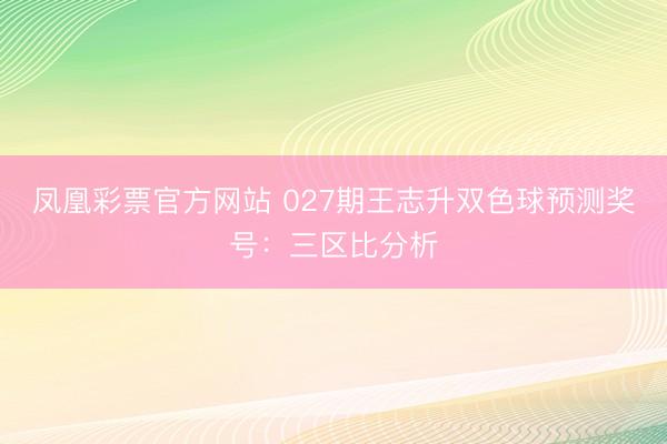 凤凰彩票官方网站 027期王志升双色球预测奖号:三区比分析