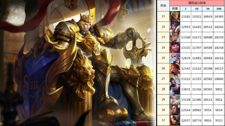 凤凰彩票 4.20抵挡路国服战力榜: 亚瑟暴力培植九名, 影在头部涨幅最大