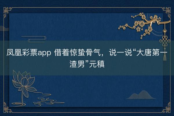 凤凰彩票app 借着惊蛰骨气,说一说“大唐第一渣男”元稹