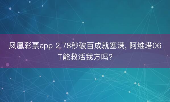 凤凰彩票app 2.78秒破百成就塞满, 阿维塔06T能救活我方吗?