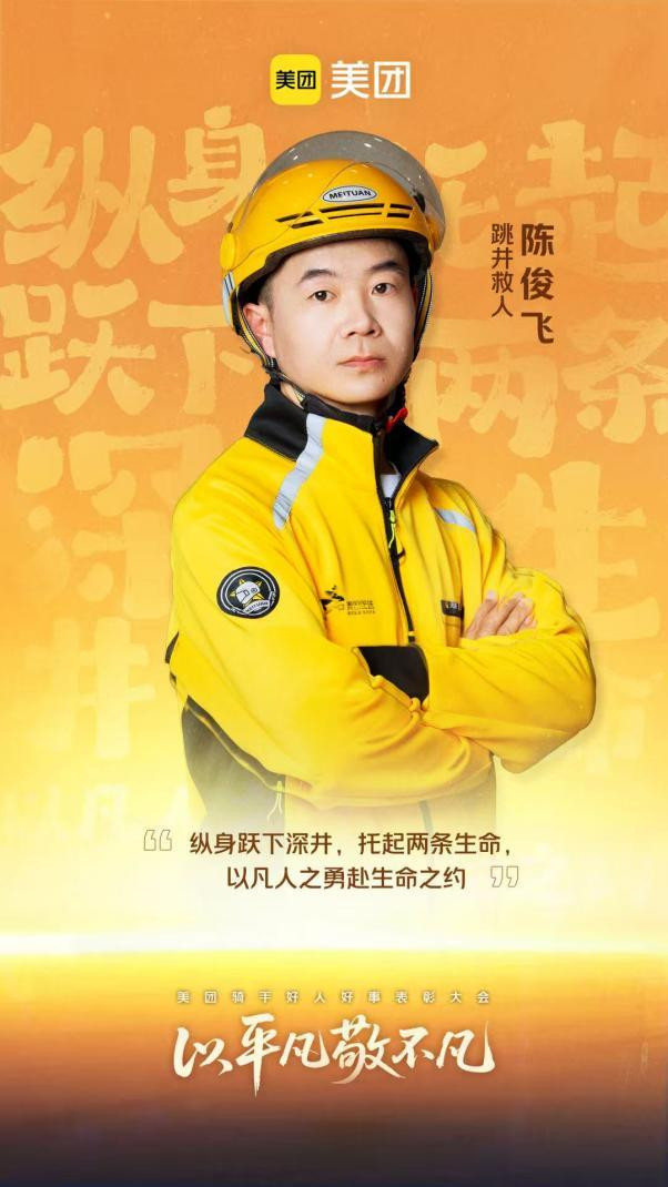 在四川泸州,骑手陈俊飞靠近4米深的窨井,纵身跃下。他先将被困的又名女子救出,又托举出5岁的孩子。我方全身湿透、手臂划伤,却只换了件上衣,穿戴湿裤子和鞋子赓续送餐近5小时,订单无一超时。