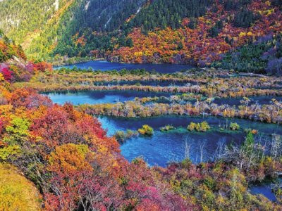 顺长海而下,即是五花海。它好似灵动的川妹子,湖底钙华千里积、腐殖质与矿物资在阳光折射下,交汇出蓝、绿、黄、橙的斑斓光影。秋日更是盛装出场——彩林反照湖中,虚实和会,宛如大当然挥就的水彩长卷。这般景致并非巧合,惟有丛林、湿地、湖泊系统健康启动,方能外化如斯渴望。