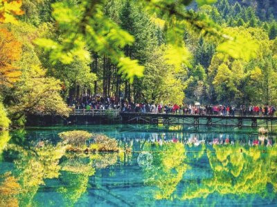 搭客秋游九寨沟。图据九寨沟景区解决局
