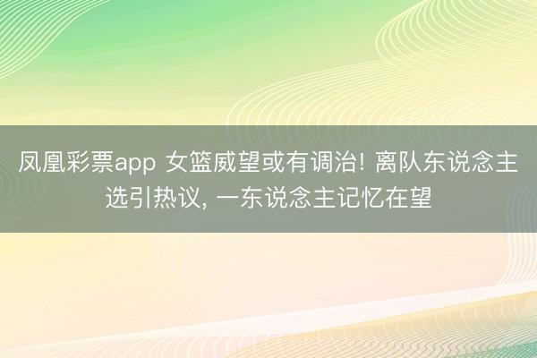 凤凰彩票app 女篮威望或有调治! 离队东说念主选引热议, 一东说念主记忆在望