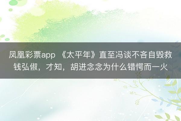 凤凰彩票app 《太平年》直至冯谈不吝自毁救钱弘俶,才知,胡进念念为什么错愕而一火