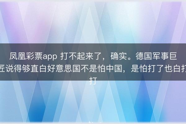 凤凰彩票app 打不起来了,确实。德国军事巨匠说得够直白好意思国不是怕中国,是怕打了也白打