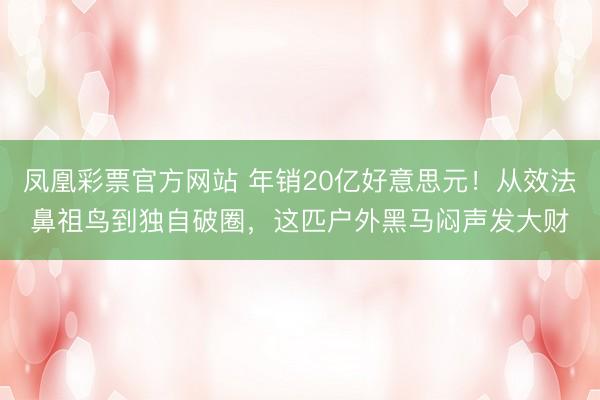 凤凰彩票官方网站 年销20亿好意思元!从效法鼻祖鸟到独自破圈,这匹户外黑马闷声发大财