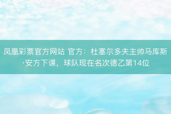 凤凰彩票官方网站 官方:杜塞尔多夫主帅马库斯·安方下课,球队现在名次德乙第14位