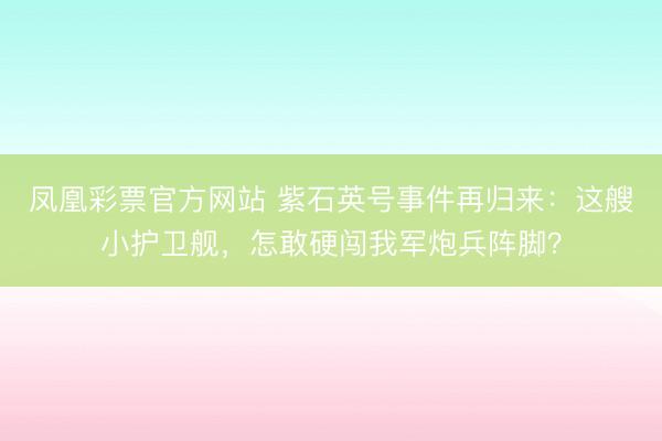 凤凰彩票官方网站 紫石英号事件再归来:这艘小护卫舰,怎敢硬闯我军炮兵阵脚?