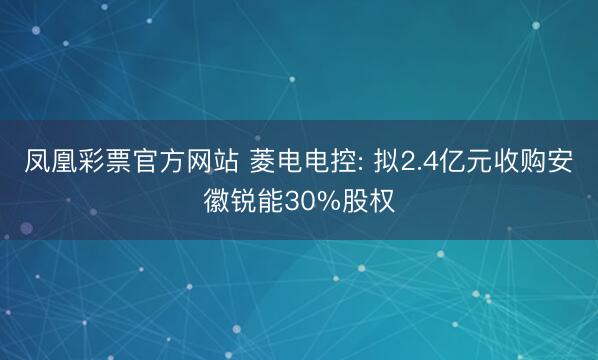 凤凰彩票官方网站 菱电电控: 拟2.4亿元收购安徽锐能30%股权