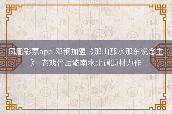 凤凰彩票app 邓钢加盟《那山那水那东说念主》 老戏骨赋能南水北调题材力作