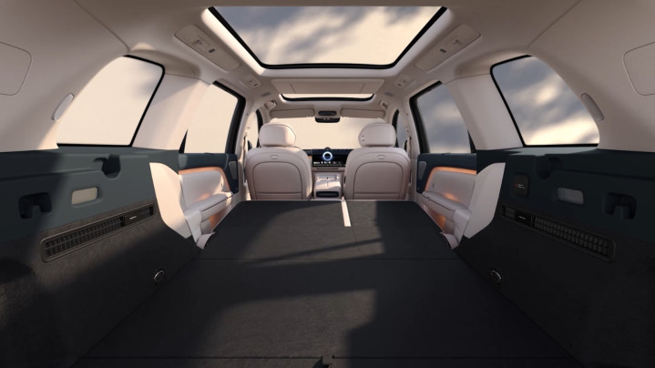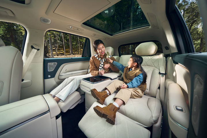 由于3090mm的轴距只需要叮嘱两排座椅,二排通说念宽度达到了前所未有的600mm,是以第二排座椅是真确真谛上不错抬升腿部的零重力联想,而绝非浅陋的大角度靠背放倒、加上腿托决策。况且右侧座椅启动零重力模式之后,前排座椅也不错翻折放倒、酿成脚托,给后排右侧乘客酿成一个极其通透、庞杂的视野,这样也不错幸免影响驾驶员视野。