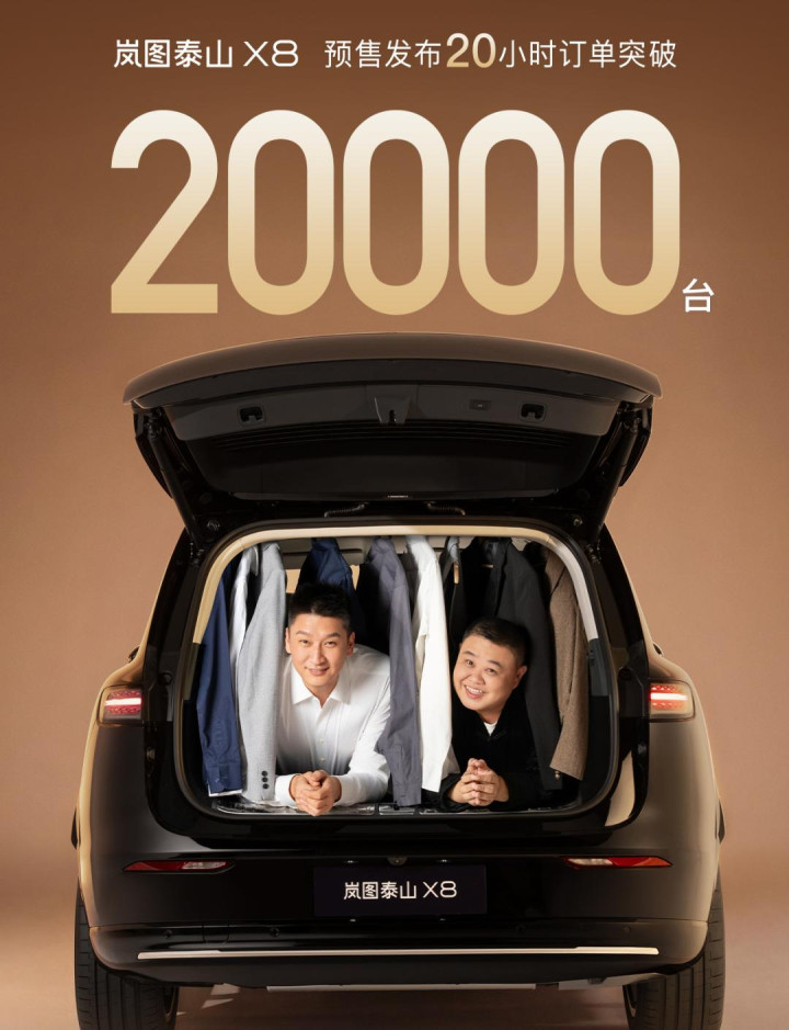 问鼎华夏之下,岚图泰山X8认真开启预售,以30.29万元的起步价,在20个小时拿下了20000张订单,迈向了家具奏效的第一步。那岚图泰山X8是如安在这场大五座内卷的大战中率先解围?