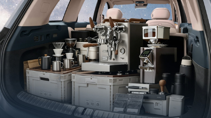 虽然,即便不开启大床模式,岚图泰山X8的普通空间实用性也卷到了极致。惯例后备箱容积达1148升,仅下千里空间就有100升,即便5东说念主满座,每个东说念主佩带一个24英寸行李箱作念一个月的自驾游也莫得问题。同期,后备箱预留了丰富的圭臬化接口,包括220V电源,可天真改装为专属换衣间、酒柜、储物柜,致使不错接咖啡机,既能知足普通家用,也能适配商务随行、户外露营等多元场景,让超大空间阐述出极致价值。