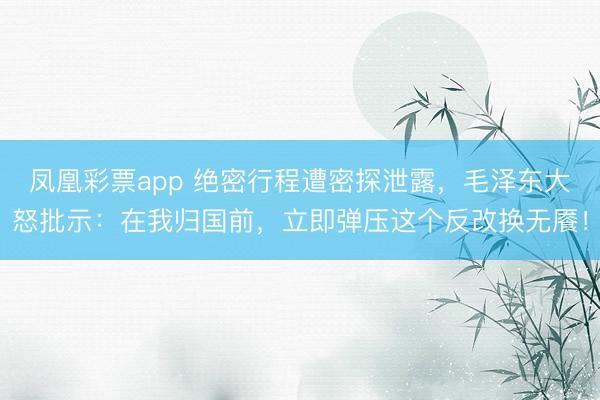 凤凰彩票app 绝密行程遭密探泄露,毛泽东大怒批示:在我归国前,立即弹压这个反改换无餍!