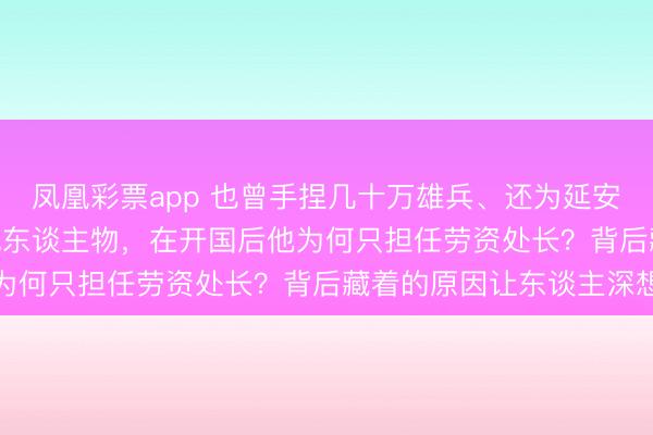 凤凰彩票app 也曾手捏几十万雄兵、还为延安捐 13 万两黄金的据说东谈主物,在开国后他为何只担任劳资处长?背后藏着的原因让东谈主深想
