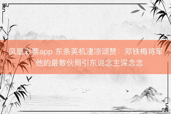 凤凰彩票app 东条英机凄凉颂赞:邓铁梅将军,他的最散伙局引东说念主深念念