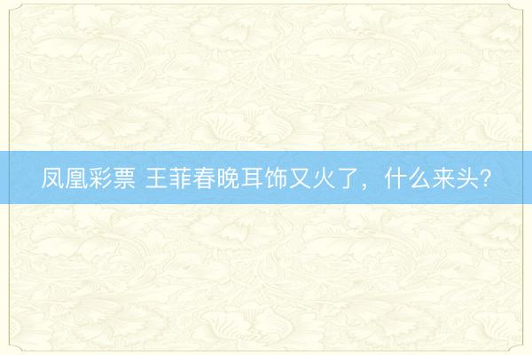凤凰彩票 王菲春晚耳饰又火了,什么来头?