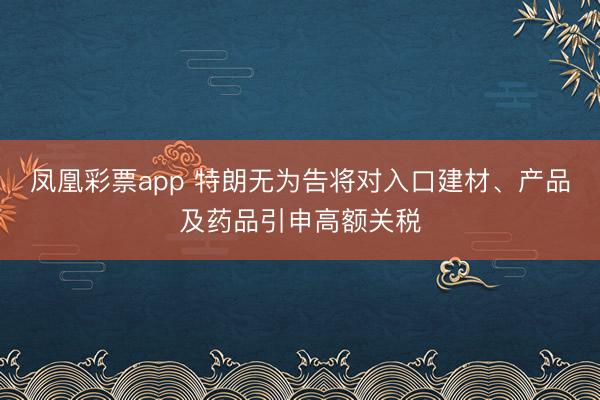 凤凰彩票app 特朗无为告将对入口建材、产品及药品引申高额关税