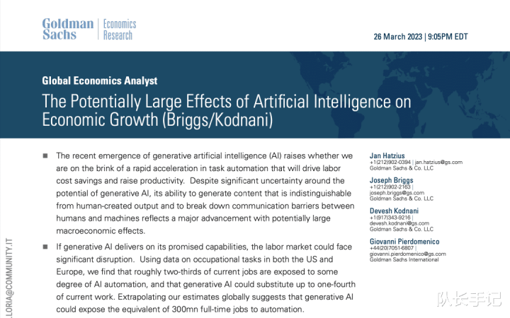 本轮AI创新与以往最大的不同在于,它替代的不再是重叠性的膂力作事,而是分析、编程、致使想象这类高融会使命。高盛的商议敷陈曾预测,宇宙约有3亿个全职岗亭濒临被AI自动化的风险。