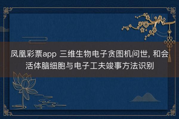 凤凰彩票app 三维生物电子贪图机问世, 和会活体脑细胞与电子工夫竣事方法识别