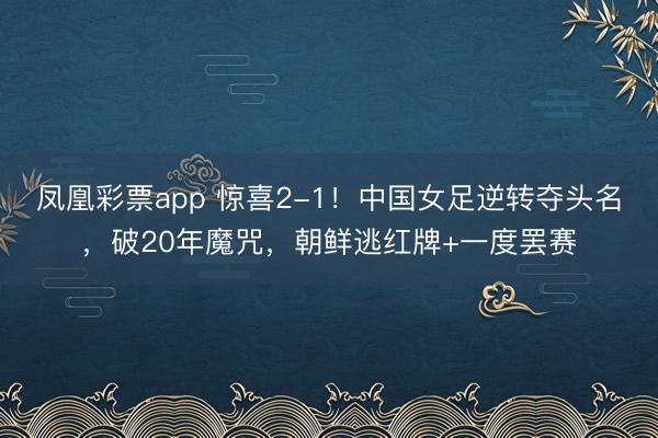 凤凰彩票app 惊喜2-1!中国女足逆转夺头名,破20年魔咒,朝鲜逃红牌+一度罢赛