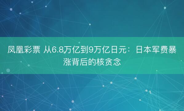 凤凰彩票 从6.8万亿到9万亿日元:日本军费暴涨背后的核贪念